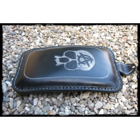 Taco con ventosas para acompañante en cuero negro con grabado "Anarchy Biker". Disponible asiento solo seat a juego.