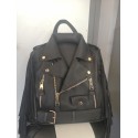 Bolso Mochila en piel diseño chaqueta rockera con flecos de gran capacidad. Cuenta con dos bolsillos de cremallera frontales y otro principal. Medidas: 33 cm x 32 cm x 11 cm.