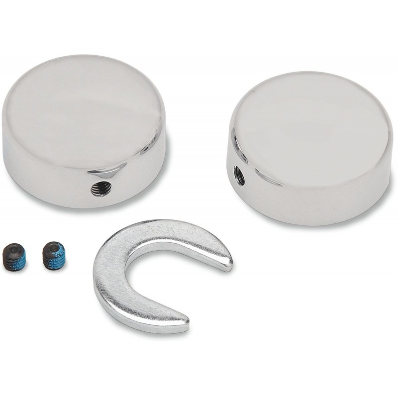 Tapas de Tornillo Eje Basculante de la marca Drag Specialties para motocicletas Harley Davidson Softail 84-99. Color cromado.