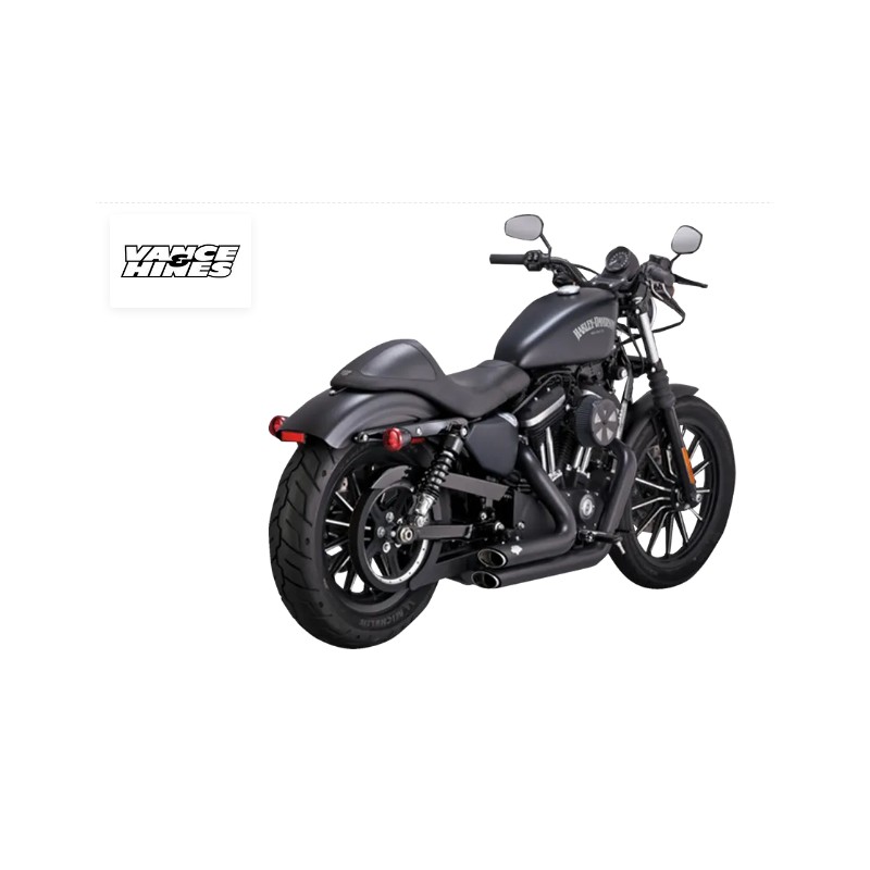 Escape de la marca Vance & Hines, modelo Shortshots escalonado, en color negro, para motocicletas Harley Davidson Sportster 14-22.
